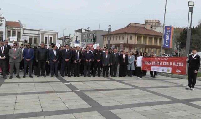 Edirne'de 50'inci Turizm Haftası etkinlikleri çerçevesinde tören düzenlendi. 25 Kasım Stadyumu önünde oluşturulan kortej, bando eşliğinde Saraçlar Caddesi'nden Atatürk heykeline kadar yürüyüş yaptı. İl Kültür ve Turizm Müdürü Kemal Soytürk'ün çelenk sunumunun ardından bando eşliğinde saygı duruşunda bulunularak, İstiklal Marşı okundu.