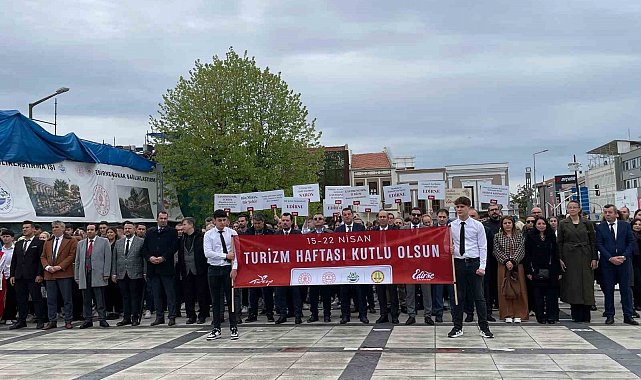 Her yıl 15-22 Nisan tarihleri arası Turizm Haftası olarak kutlanıyor. Bu çerçevede Edirne'de Atatürk Heykeli önünde düzenlenen tören İl Kültür ve Turizm Müdürü Kemal Soytürk'ün çelenk sunumu ile başladı. Ardından bando eşliğinde saygı duruşunda bulunuldu ve İstiklal Marşı okundu.