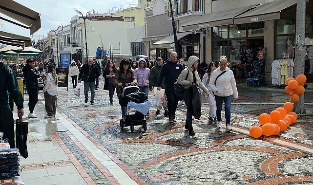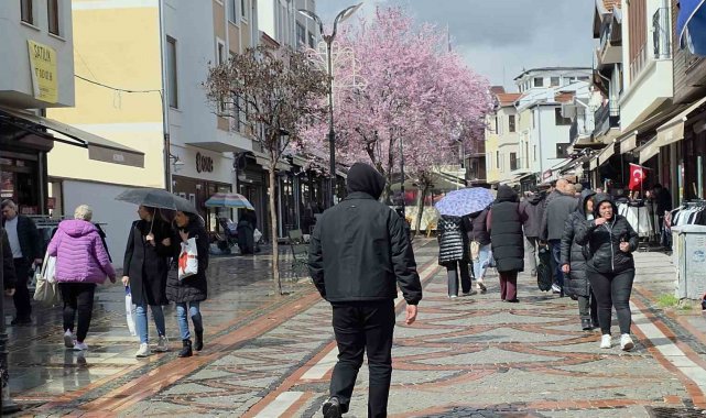 Edirne'de mart ayının son hafta sonunda etkili olan yağmur, kent yaşamını olumsuz etkilemedi. Özellikle Saraçlar Caddesi'nde alışveriş yapan vatandaşlar, yağışa rağmen sokakları boş bırakmadı.