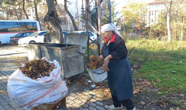 Edirne'de yaşlı kadın, 34 yıldır sonbaharda düşen yaprakları gübreye dönüştürüyor