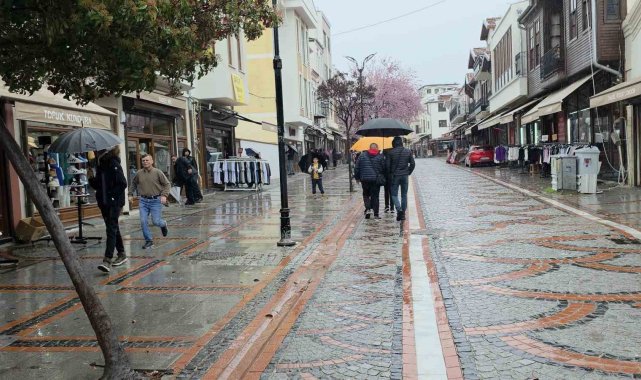 Edirne'de Pazar sabahı etkili olan yağış, kent genelinde serin havayla birlikte günlük yaşamı etkiledi. Sabah saatlerinde başlayan yağmur, cadde ve sokaklarda yoğunluk oluştururken, ortaya kartpostallık görüntüler çıktı.