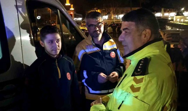 Edirne İl Emniyet Müdürü Onur Karaburun, denetim noktasında ambulans ekibine sürpriz kutlama yaparak 14 Mart Tıp Bayramı'nı kutladı.