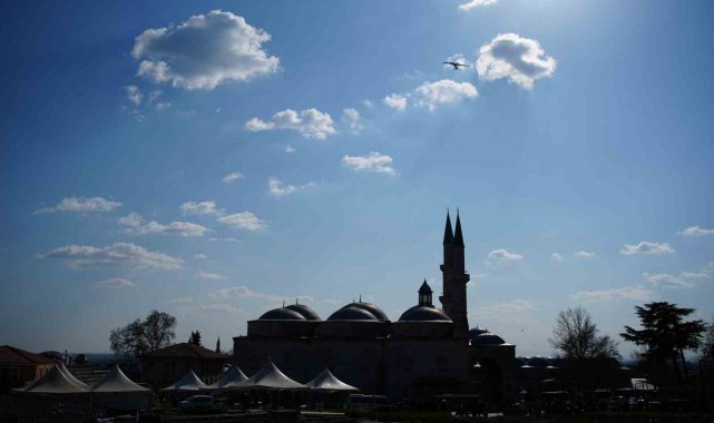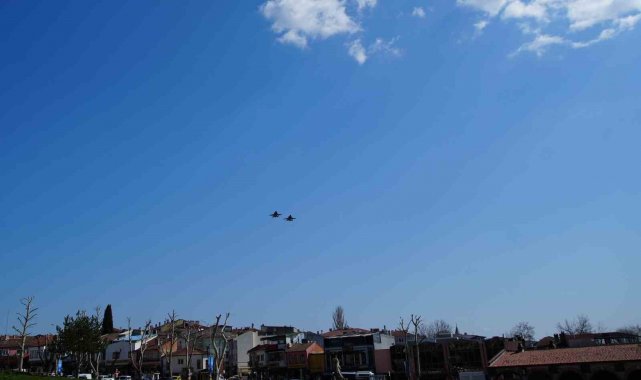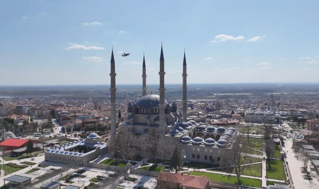Edirne'de 26 Mart Balkan Şehitlerini Anma Günü etkinlikleri öncesinde F-16 savaş uçakları ve Bayraktar Akıncı, Selimiye Camii çevresinde prova uçuşu gerçekleştirdi.
