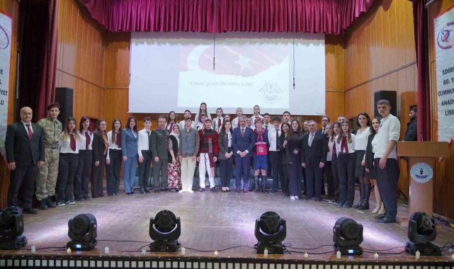Edirne'de 18 Mart Çanakkale Zaferi'nin 111'inci yılı ve Şehitleri Anma Günü dolayısıyla Halk Eğitim Merkezi Çok amaçlı Salon'da program düzenlendi. Saygı duruşunda bulunulması ve İstiklal Marşı'nın okunmasıyla başlayan programda konuşan Piyade Üsteğmen Caner Yıldırım, 111 yıl önce bugün 18 Mart 1915'te Çanakkale Boğazı'nın denizden geçilemeyeceğinin tüm dünyaya gösterildiğini ve Deniz Zaferi'nin ilan edildiğini belirtti. Bu tarihin TBMM Genel Kurulu'nda 4768 sayılı Kanun ile 2002 yılından itibaren aziz vatanları için canlarını seve seve feda eden kahraman şehitleri anmak maksadıyla aynı zamanda "Şehitler Günü" olarak kabul edildiğini hatırlatan Üsteğmen Yıldırım, "Tüm yokluk ve imkânsızlıklara rağmen milletimizin kahraman evlatlarının şahadeti ve gaziliği pahasına kazanılan bu zafer, İstiklal Harbimize ve nihayetinde Türkiye Cumhuriyeti'ne giden yolda çok önemli bir kilometre taşı olmuştur" dedi.