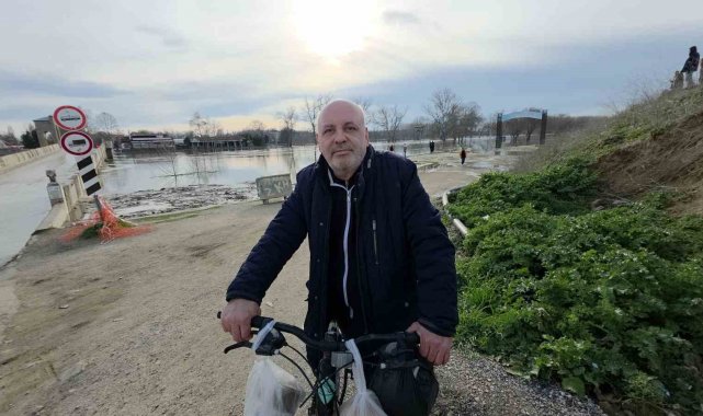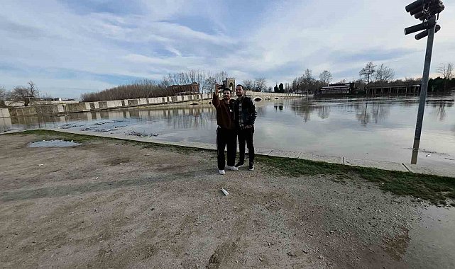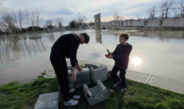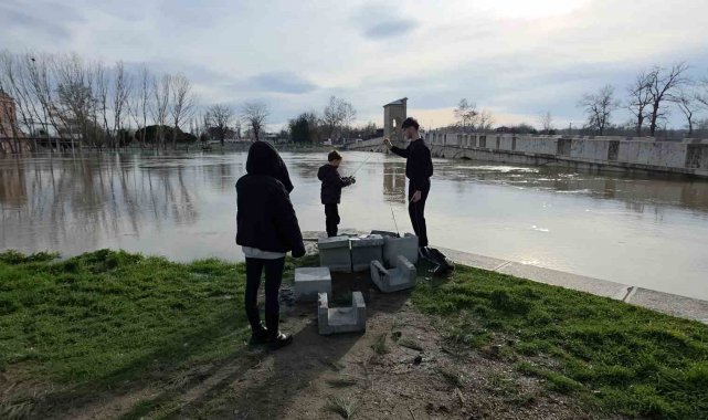 Edirneliler taşkın riski bulunan nehir kenarına akın etti