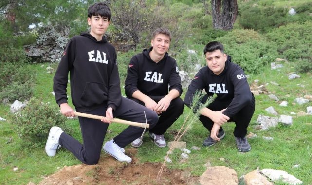 Edremit Anadolu Lisesi öğrencileri, Güre Kavurmacılar Mahallesi'nde oluşturulan Hatıra Ormanı'nda fidan dikim etkinliği gerçekleştirdi.