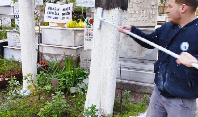 Edremit Belediyesi bayram öncesi mezarlıklarda bakım çalışmalarını sıkılaştırdı