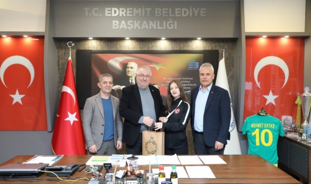 Türkiye Şampiyonluğu'nun ardından Edremit Belediye Başkanı Mehmet Ertaş'ı ziyaret eden Ecrin Yanıt, kazandığı şampiyonluk madalyasını Başkan Ertaş'a takdim etti. Genç sporcuyu tebrik eden Başkan Ertaş, "Genç yaşta ardı ardına aldığı madalyalarla göğsümüzü kabartan milli sporcumuz Ecrin'i yürekten kutluyor, başarılarının devamını diliyorum" ifadelerini kullandı.