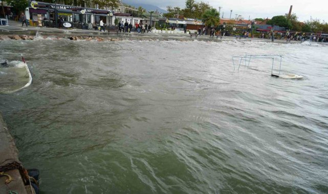 Edinilen bilgiye göre, saatteki hızı zaman zaman 70-80 kilometreye ulaşan şiddetli lodos, Edremit Körfezi'nde büyük dalgalara neden oldu. Fırtınanın en fazla zarar verdiği bölgelerden biri ise Edremit'in Güre Mahallesi Sahili oldu. Sahilde demirli halde bulunan iki küçük balıkçı teknesi, lodosun oluşturduğu dev dalgalara dayanamayarak battı.