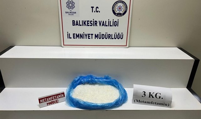 Balıkesir'de gerçekleştirilen operasyonda, 3 kilogram metamfetamin ele geçirildi.