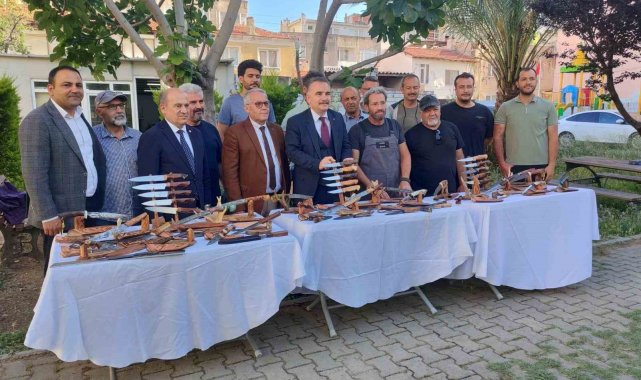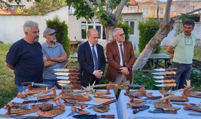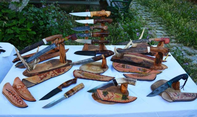 Körükle ısıtılan örs ile dövülen demir çeliğin, becerikli ellerde şekillendiği unutulmaya yüz tutmuş meslekler arasında yer alan bıçak yapım kursunda üretilen bıçaklar ve kılıfları görücüye çıktı.