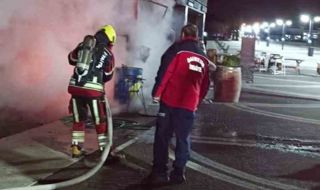 Balıkesir'in Edremit ilçesinde sahil şeridindeki bir iş yerinde çıkan yangın, itfaiye ekiplerinin müdahalesiyle söndürüldü.