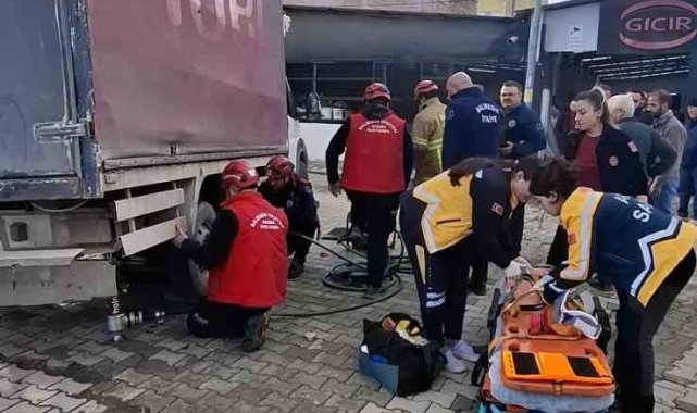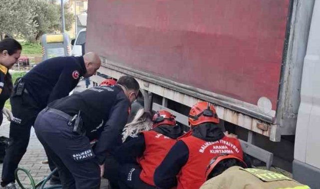 Balıkesir'in Edremit ilçesinde geri manevra yapan kamyonun altında kalan vatandaş, itfaiye ekiplerinin zamanında müdahalesiyle kurtarıldı.