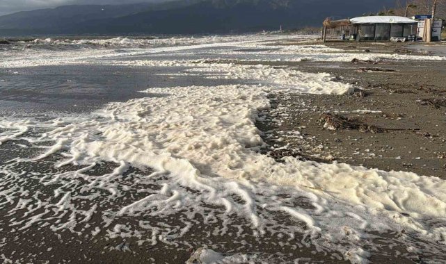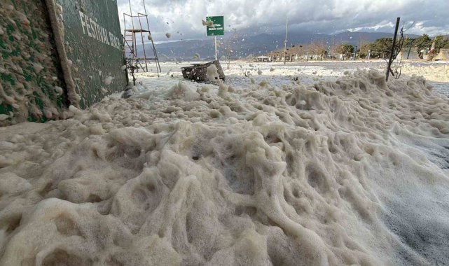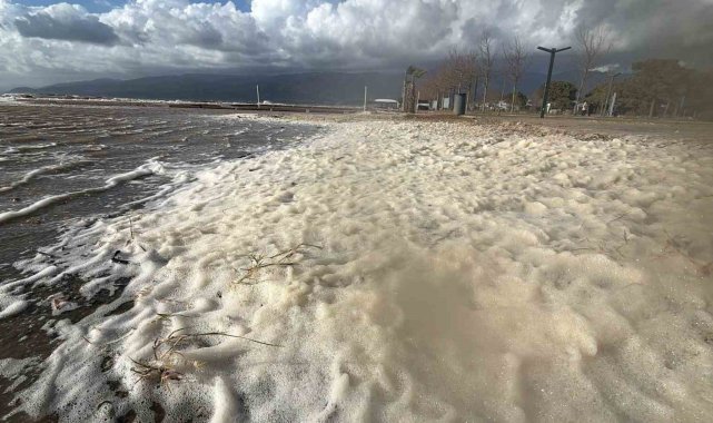 Edremit'te lodos sahili köpükle kapladı