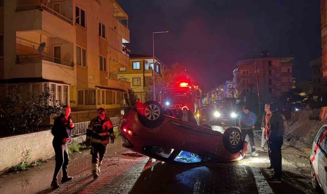 Balıkesir'in Edremit ilçesinde bir otomobil park halindeki bir diğer otomobile çarpıp takla attı. Sürücü kazayı yara almadan atlattı.