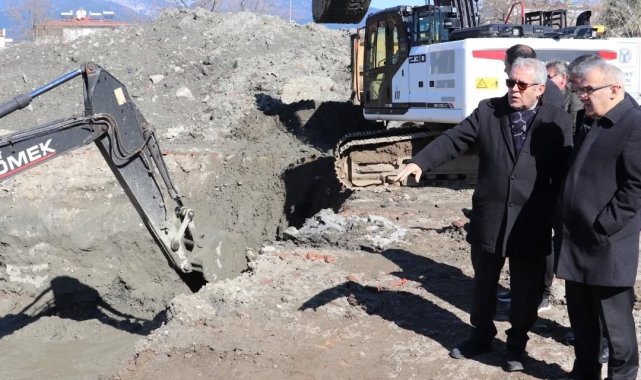 Edremit'te yapımı süren okul inşaatında inceleme