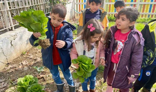Efeler Belediyesi Gündüz Bakımevlerinde eğitim gören minikler, kendi elleriyle yetiştirdikleri ürünleri hasat etmenin mutluluğunu yaşadı.