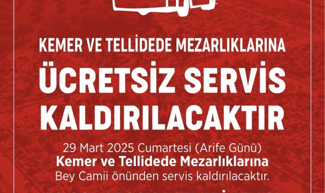 Efeler Belediyesi, arife günü ve Ramazan Bayramı'nın birinci günü Kemer ve Tellidede mezarlıklarındaki yakınlarının kabirlerini ziyaret etmek isteyen vatandaşlar için ücretsiz servis hizmeti sağlayacak.