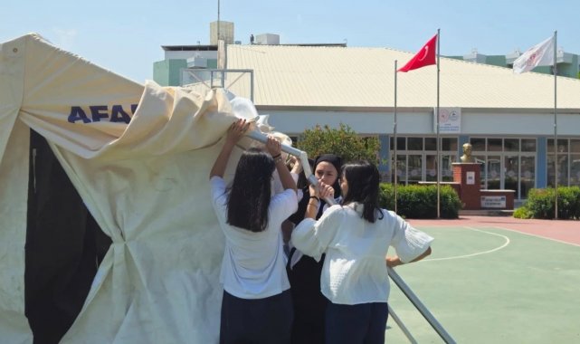 AFAD Aydın'dan yapılan açıklamada, "Gençlik ve Spor İl Müdürlüğü Efeler Gençlik Kampı öğrencilerine, kurumumuz eğitmenleri tarafından Afet Farkındalık Eğitimi ve Çadır Kurma Eğitimi verildi" ifadelerine yer verildi.