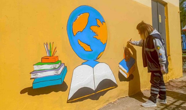 Aydın'ın Efeler ilçesinde parklardaki trafolar ve yüzeyler dekoratif boyamalarla yenilenirken, görüntü kirliliği ortadan kaldırılıp çocuklara yönelik renkli ve eğitici görsellerle alanlar estetik bir görünüme kavuşturuldu.