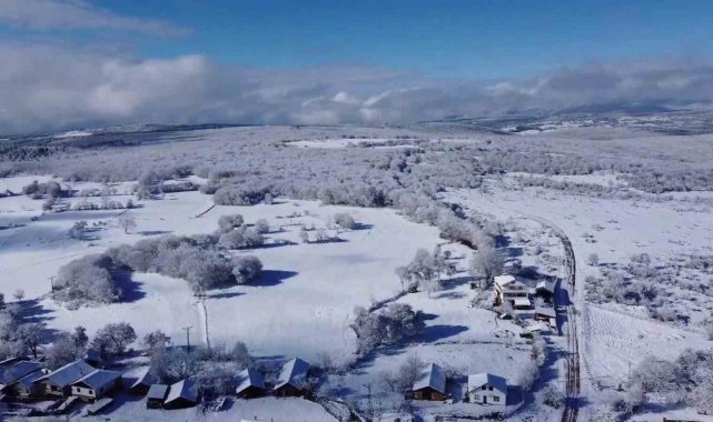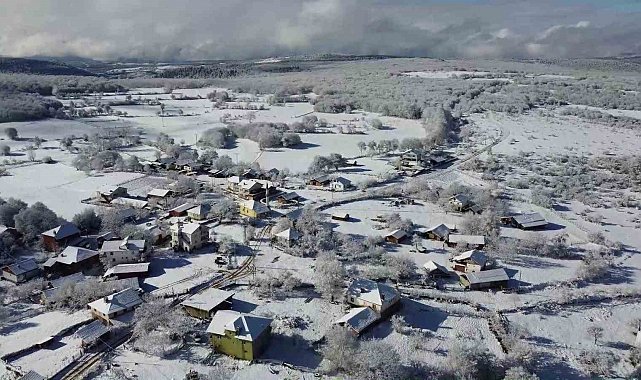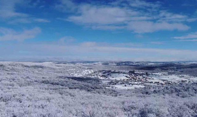 Karabük'ün yüksek kesimlerinde kar yağışı etkili olmaya devam ediyor. Eflani'de de kar yağışı sonrası ilçe merkezi ve köyler beyaz örtüyle kaplandı. Tamamen beyaza bürünen ilçeye bağlı Çukurören köyünde kartpostallık görüntüler ortaya çıktı. Dronla kaydedilen o anlar görenleri mest etti.