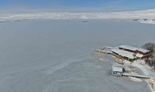 Sivas'ta birçok efsaneye konu olan ve yaz aylarında binlerce göçmen kuşu ağırlayan Tödürge Gölü tamamen buzla kaplandı. Soğuk havanın etkisiyle donan gölde kartpostallık görüntüler ortaya çıktı.