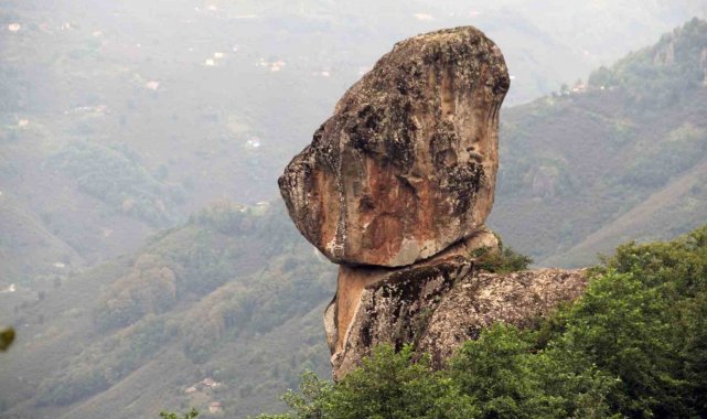 Giresun'da tonlarca ağırlığındaki iki dev kayanın, dik yamaca adeta fizik kurallarına meydan okuyan duruşuyla dikkat çeken "Gelin Kayası", efsaneleriyle de ziyaretçilerin ilgisini çekiyor. Bölge, Giresun İl Özel İdaresi tarafından turizme kazandırılıyor.