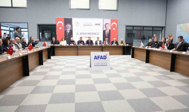 Ege Denizi'nde devam eden deprem fırtınası sonrası, Muğla'da Vali İdris Akbıyık başkanlığında başta AFAD olmak üzere tüm kurumların katıldığı bir toplantı yapıldı.