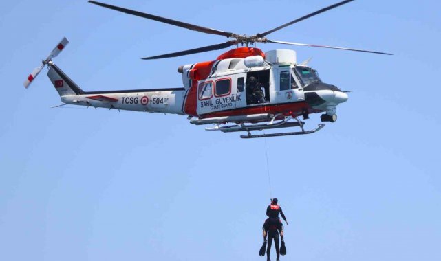 Nefes kesen tatbikatta, ticaret gemisindeki temsilen 3 cansız manken ve 7 personel denize bırakıldı. Sahil Güvenlik Komutanlığına ait havada 6 saat görev yapabilen CN-235 Casa arama kurtarma uçağı, kazazedeleri tespit etmek için olay mahalline geldi.