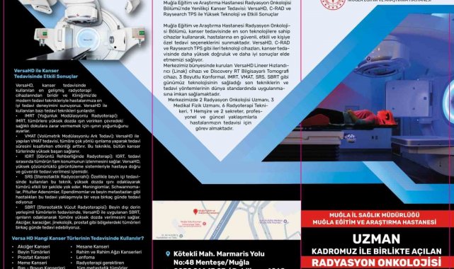 Muğla Sıtkı Koçman Üniversitesi Radyasyon Onkolojisi Bölümü, son teknolojiye sahip cihazla ve uzman kadroyla hasta kabulüne başladı. Modern tıbbi donanımlarla güçlendirilen merkezde, radyoterapi dağıtımı aralıklarında dünya standartlarında hizmet verebilecek.