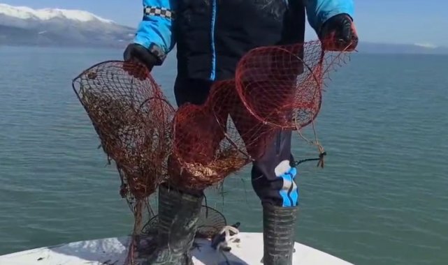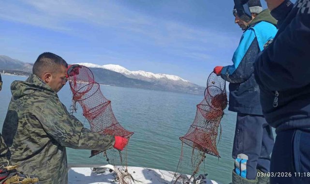 Eğirdir Gölü'nde kaçak pinterlere el konuldu, kerevitler göle bırakıldı