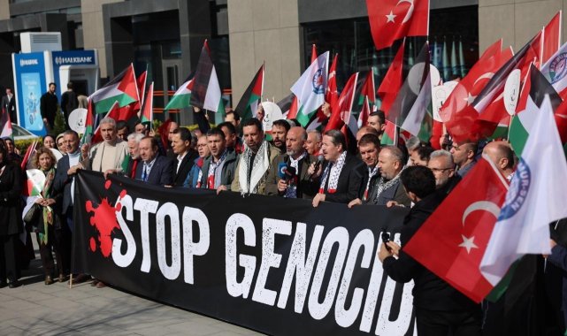 'Stop Genocide!' yazılı pankartın önünde konuşan Eğitim-Bir-Sen Genel Başkanı Ali Yalçın, yakında yola çıkacak Özgürlük ve Sumud Filosu'na katılacak sendikacıları yolcu etmek üzere bir araya geldiklerini, yaklaşık 200 geminin bu büyük insani girişimde yer almasının beklendiğini aktardı.