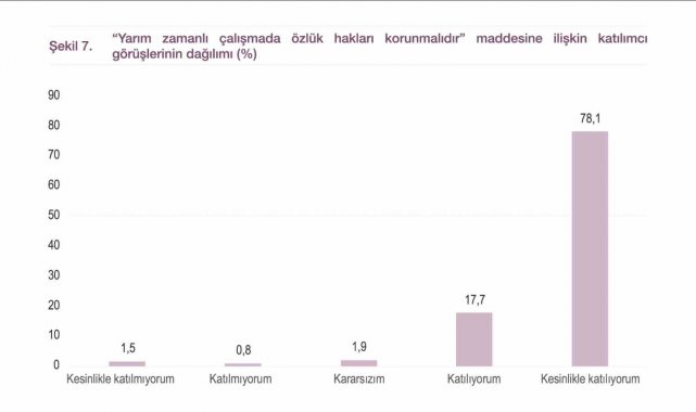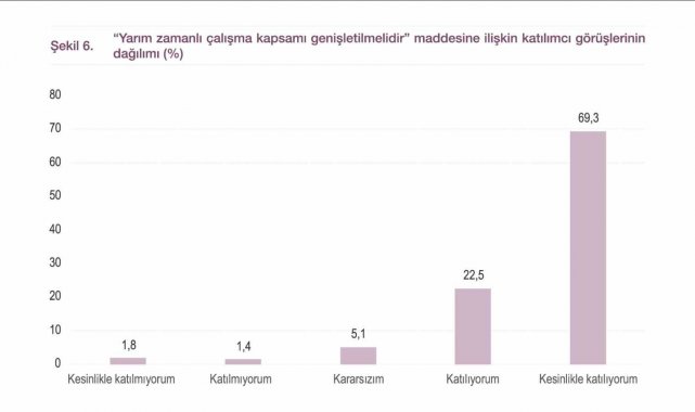 Mevcut doğum izninin 60 haftaya çıkarılmasını beklediklerini ve bu durumun kadının hem ev hayatına hem de iş hayatına adaptasyonunu olumlu yönde etkileyeceğini vurgulayan Aydın, "Mevcut doğum izni politikası, sahadaki gerçeklikle örtüşmüyor ve yeniden ele alınması gerekiyor. Araştırmamıza katılan katılımcıların yüzde 93'ü, doğum sonrası izin süresinin arttırılmasını gerekli görürken, yüzde 90'ı doğum izninin doğumdan önce 8, doğumdan sonra da 52 olmak üzere toplamda 60 haftaya çıkarılmasını talep ediyor. Bu durum bir ayrıcalık olarak görülmemeli. Bu sonuç bizlere kadınların hem anne hem çalışan olarak var olma talebini göstermeli. Doğum izni süreleri kadınların doğum sonrası fiziksel iyileşmesini, bebeğin gelişimini ve annenin psikolojik uyum sürecini karşılamaktan uzaktır. Kadınlar doğumdan çok kısa bir süre sonra işine dönmek zorunda kalıyor. Bebeğini, bakım sorumluluğunu yalnız başına taşımak zorunda kalıyor" şeklinde konuştu.