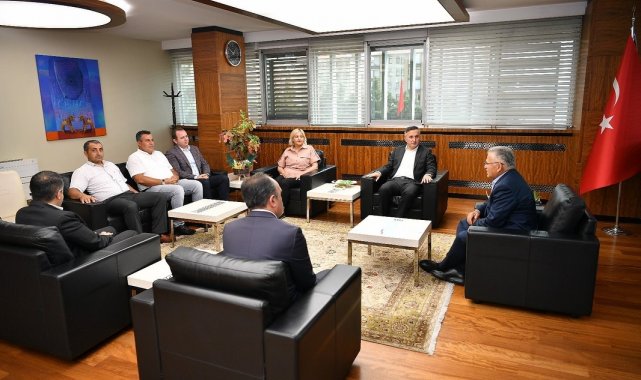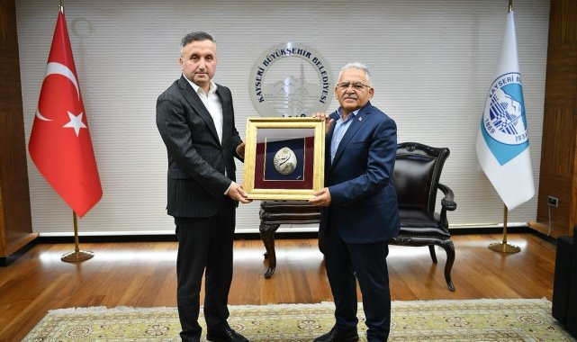 Kayseri Büyükşehir Belediye Başkanı Dr. Memduh Büyükkılıç, Kayseri İl Milli Eğitim Müdürü Coşkun Esen ve beraberindeki heyeti makamında ağırladı. İl Müdürü Esen, Başkan Büyükkılıç'a, 17. Uluslararası MEB Robot Yarışması'na verdiği destekten dolayı teşekkür etti.