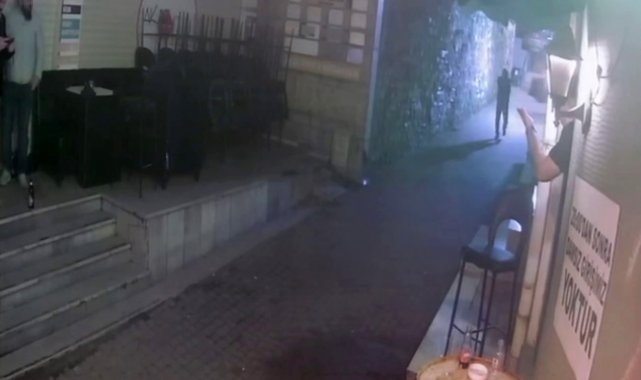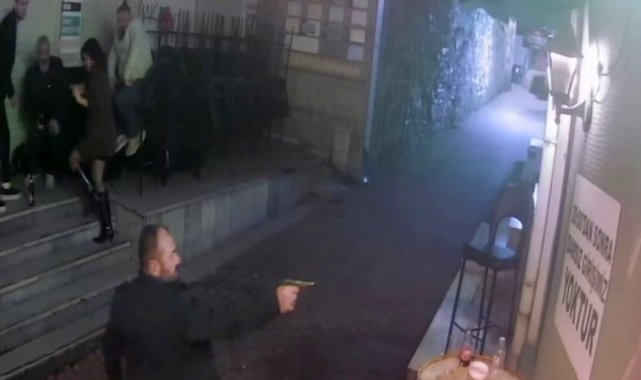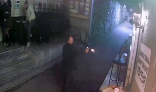 Öte yandan, saldırı anı iş yerinin güvenlik kameralarına yansıdı. Görüntülerde şüphelinin mekan önüne gelerek silahla ateş ettiği, ardından tekrar ateş etmek istediği sırada silahın tutukluk yaptığı ve olay yerinden kaçtığı görüldü.
