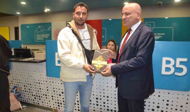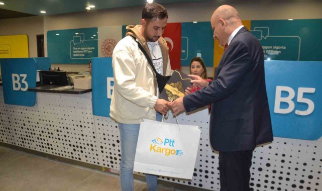 Ehliyet değiştirme ücretini yatırmak için merkez şubesine gelerek Ptt'nin kuruluş yıl dönümüyle aynı rakamları taşıyan 185 numaralı gişe numarasını alan İbrahim Kandemir'e Başmüdür Suat Öztürk tarafından anma pulu serisi olan bir albüm hediye edildi. 185. müşteri sıra numarası alan İbrahim Kandemir ehliyet yenileme ücretini yatıracağını belirterek, "Ptt'nin 185 yılı olduğunu bilmediğini ve bundan sonra unutmam mümkün değil. Müdür Bey ve basın mensuplarının ilgisi karşısında hayretimi gizleyemedim. Verilen hediyeler için Suat Beye ve Ptt'ye teşekkür ederim. 185. yılınız kutlu olsun" dedi.
