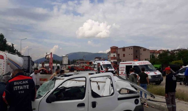 Kaza, saat 10.00 sıralarında Bucak ilçesi Onaç Mahallesi Alparslan Türkeş Bulvarı üzerinde meydana geldi. Edinilen bilgilere göre, 16 yaşındaki Mehmet E.Ö. idaresindeki 15 ACV 236 plakalı hafif ticari araç, ilçe girişindeki kavşağa geldiği sırada sürücüsünün direksiyon hâkimiyetini kaybetmesi sonucu kaldırıma çarptı. Çarpmanın etkisiyle savrulan araç, takla atarak kırmızı ışıkta bekleyen Ahmet Ü. (46) yönetimindeki 15 EJ 837 plakalı kamyonete çarptı.