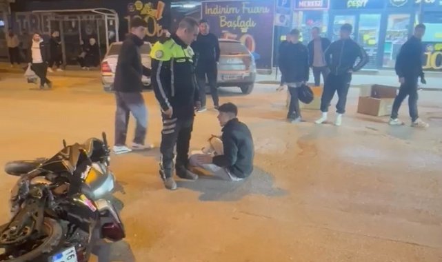 Bursa'nın İnegöl ilçesinde polis uygulamasından kaçarken kaza yapan ehliyetsiz motosiklet sürücüsü yaralandı.