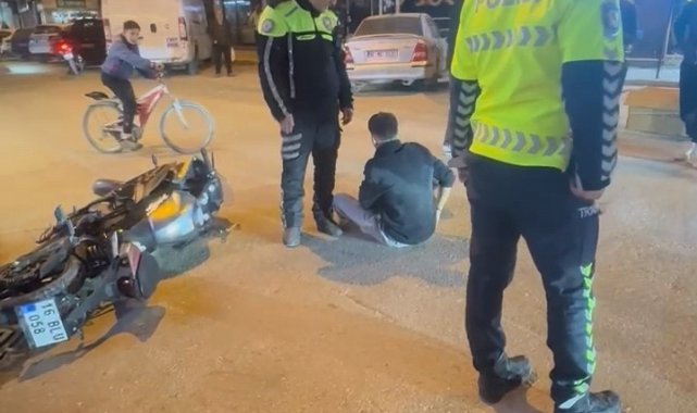 İnegöl İlçe Emniyet Müdürlüğü Trafik Büro Amirliği ekipleri, ilçenin birçok yerinde olduğu gibi, Kemalpaşa Mahallesi Mahmutesatbey Caddesinde sürücülere yönelik uygulama yaptı. Uygulama sırasında polisin 'Dur' ihtarına uymayan 16 BLU plakalı motosikletin sürücüsü kaçmaya başladı. Polise de çarpıp kaçan sürücü, hızla sokak aralarında ilerlerken, trafiği ve yayaları da tehlikeye attı.
