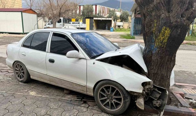 Hatay'da 17 yaşındaki gencin kullandığı otomobil, kontrolden çıkarak kaldırımdaki ağaca çarptı. Otomobilin kontrolden çıktığı anlar güvenlik kamerasına yansırken, kazada sürücü yaralandı.