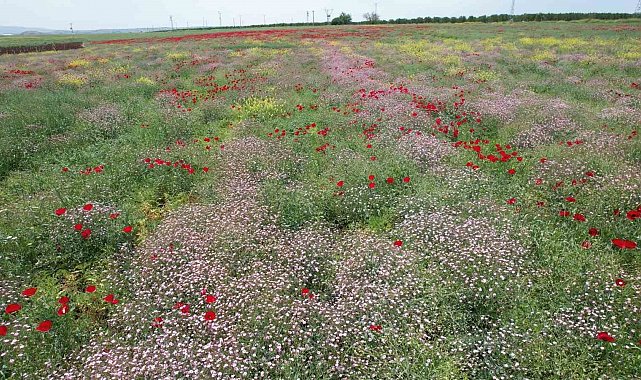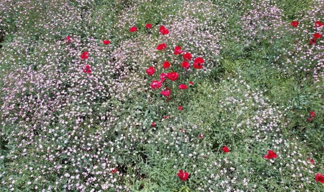 Adıyaman'da ekili alanlar çiçeklerin açmasıyla renklendi. Yeşilin hakim olduğu alanlarda açan rengarenk çiçeklerle renk cümbüşü ortaya çıktı. Yağışların zaman zaman devam ettiği kentte, güneşin de çıkmasıyla birlikte doğanın eşsiz güzelliği tüm renkleriyle kendini gösterdi. Gelincikler kırmızı rengiyle yeşilin hakim olduğu ekili alanları kızıla boyarken, sarı ve pembe çiçekler de rengarenk bir görüntünün ortaya çıkmasına neden oldu.