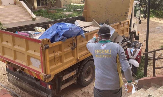 Alınan bilgiye göre, ilçeye bağlı Koyuncu Mahallesi'nde bulunan 10 katlı bir apartmanın zemin katında yalnız yaşayan 60 yaşlarındaki bir kadının dairesinden gelen kötü kokular üzerine komşuları ihbarda bulundu. Bunun üzerine adrese giden Erdemli Belediyesi Zabıta Müdürlüğü ekipleri, 3-4 yıl önce eşi vefat ettiği için yalnız kalan yaşlı kadının dairesinin çöp eve dönüştüğünü gördü. Kaptığı enfeksiyon nedeniyle hastalanan kadın ilçe devlet hastanesine sevk edilirken, eve Erdemli Belediyesi Temizlik İşleri Müdürlüğü ekipleri sevk edildi. Zabıta ekiplerinin ve kadına tahsis edilen vasisi gözetiminde koku nedeniyle eve gaz maskesi ile girmek zoruna kalan temizlik işçileri 2 gün süren çalışma yaptı. İlk gün 5, ikinci gün ise 2 kamyonet çöp çıkarıldı.