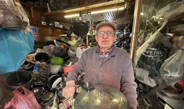 Samsun'da 80 yaşındaki Zeki Yılmaz, 39 yıldır geçimini "çaydanlık tamiri" işinden sağlıyor.
