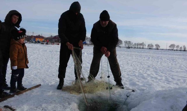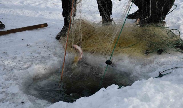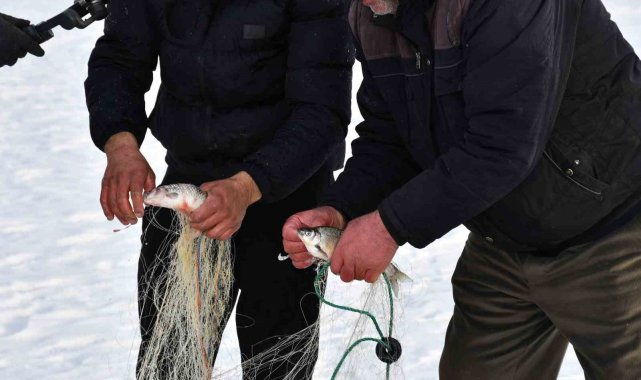 Sıcaklığın sıfırın altında 20 dereceye kadar düştüğü bölgede, kara, buza ve soğuğa aldırış etmeden buzları kırıp balık avlayan balıkçılar, ekmek paralarını buzun altından çıkarıyor. Ardahan'a 55, Çıldır ilçesine ise 10 kilometre uzaklıkta bulunan Çıldır Gölü'ne balıkçılar, her sabah güneşin doğuşuyla birlikte yeni umutlarla yola çıkıyor. Balıkçılar vatandaşların çoğunun 'buzlar kırılır' diye üzerine çıkmaya korktuğu gölün üzerine neredeyse her gün çıkıp, buzları kırıp balık avlıyor. Önceden attıkları ağların yerlerini belirleyip oltaya takılan balıkları gölden çıkaran balıkçılar, çok riskli olmasına rağmen ekmek parası kazanmanın mutluluğunu yaşıyor. Haftada ortalama 100 kilogram balık avlayan balıkçılar, tuttukları balıkların kilosunu 150 TL'den pazarda satıyor. Akşam eve ekmek parasını kazanmanın mutluluğu ile dönen balıkçılar, yöredeki en büyük geçim kaynaklarının göl olduğunu belirtiyor.