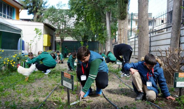 İzmir'de ortaokul öğrencileri, 'okulda çiftlik var' projesi kapsamında, depolanan yağmur suyunu kullanarak serada meyve ve sebze üretimi yapıyor. Elde edilen ürünler hem satılıyor hem de okulda beslenen hayvanlar için kullanılıyor. Proje ile sürdürülebilir üretime katkı sağlanması amaçlanıyor.
