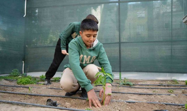 Birbirinden çeşit meyve ve sebze, miniklerin ellerinde üretiliyor