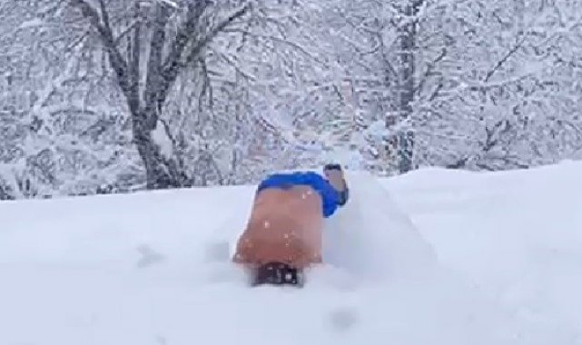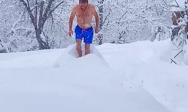 Sakarya'nın Hendek ilçesi Aksu Mahallesi'nin yüksek bölgelerinde yaşayan 36 yaşındaki Mesut Özkılıç, şortunu giyerek eksi 10 derece soğuğa aldırmadan 1 buçuk metre kalınlığındaki karların içerisinde kahkahalar eşliğinde yüzmeye çalıştı. Tanıdıkları o anları cep telefonu ile kayıt altına aldı. Özkılınç "Var mı benimle dereye gelecek olan, dereye dalıyorum" diyerek karla kaplanan evinin bahçesine atladı. Kara dalış yaptıktan sonra kar banyosu yapmayı da ihmal etmeyen Özkılınç "Sıcak kar yağıyor" şeklinde konuştu.