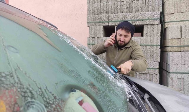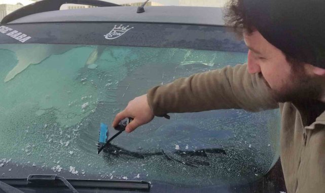 Eksi 17 dereceyi gören kentte araç camları buz tuttu