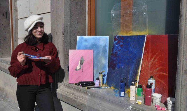 MUŞ (İHA) – Muş'un Bulanık Kız Meslek Lisesi Moda Tasarım Bölümü 12. sınıf öğrencisi Akasya Gündüz (16), Merkez Camisi önünde eksi 25 derecede yağlı boya resimleri yaptı.