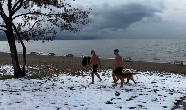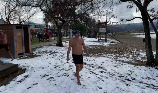 Eksi 3 derecede İznik Gölü'ne girdiler
